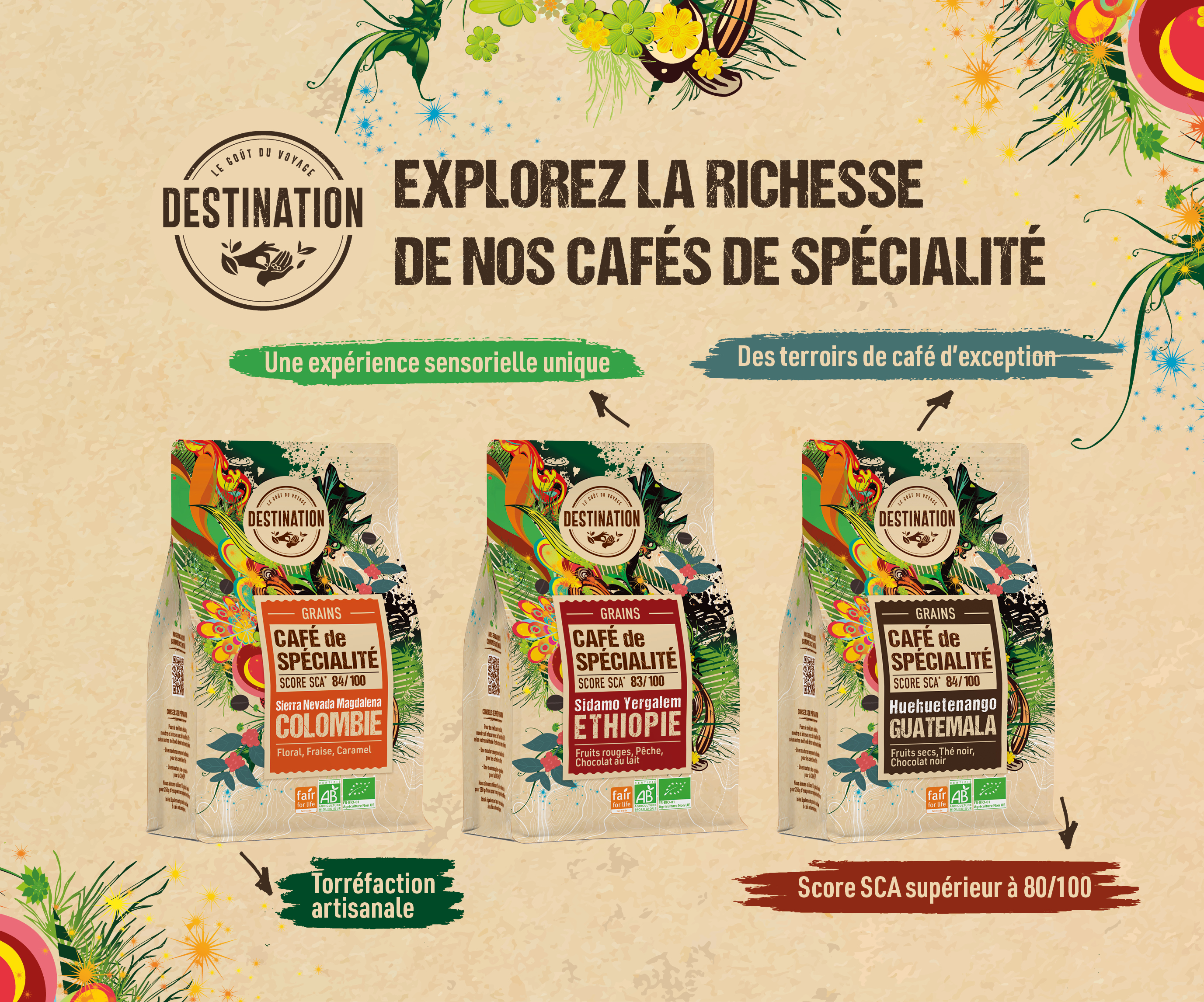 Depuis 1999, avec la même passion pour le voyage et les saveurs authentiques, nous partageons avec vous nos délicieux produits bio provenant du monde entier. Destination sillonne les champs, les plantations et les jardins d’Asie, d’Afrique et d’Amérique Latine en quête des plus beaux terroirs de l’agriculture biologique, durable et équitable.