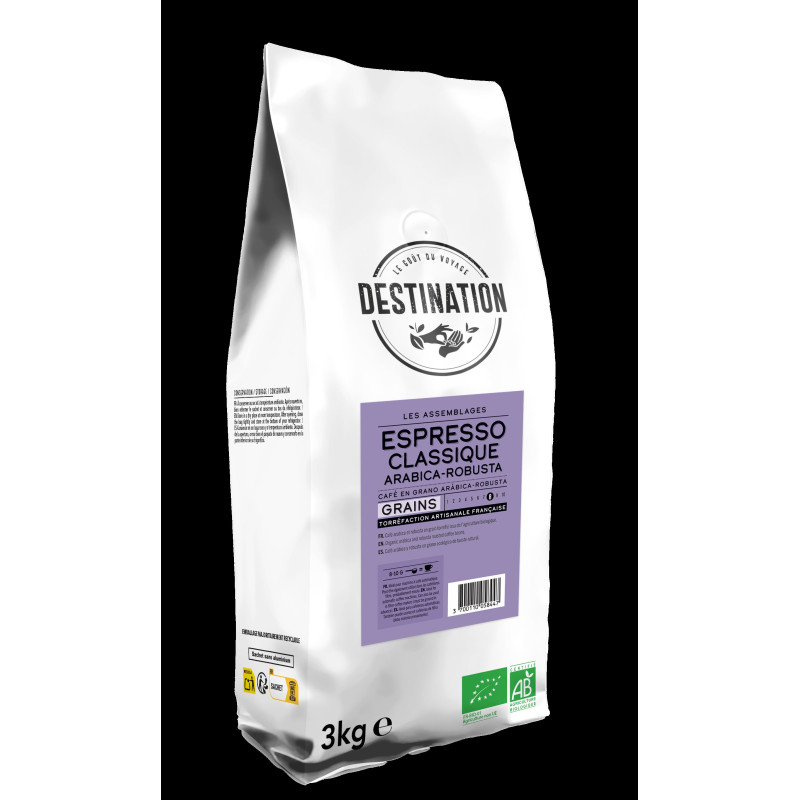 Ce café est un assemblage d'arabica et de robusta issus de l’agriculture biologique. Idéal pour votre machine à grains, cet Espresso vous offre une tasse aux saveurs intenses et rondes, typiques des cafés « barista ».