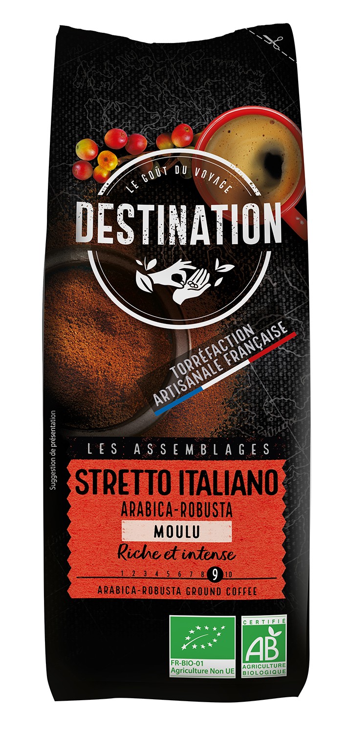 À la découverte du café à l’italienne. Mariage d’arabica d’Amérique Latine et de robusta, le Stretto tire de ces deux variétés biologiques le meilleur pour vous donner un café aux arômes intenses et au corps puissant.