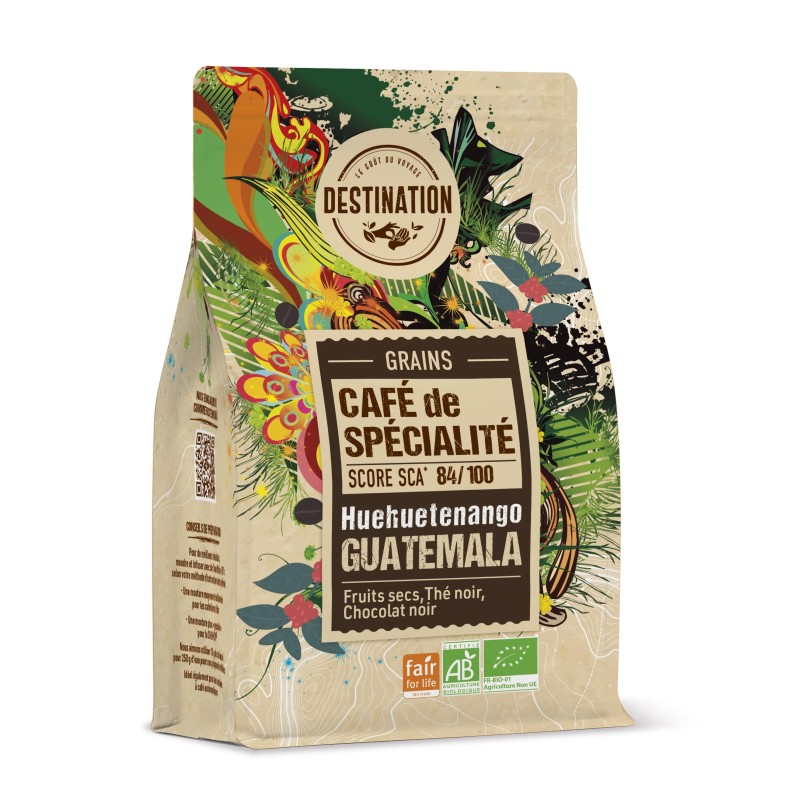 Sillonnez les hauteurs montagneuses de la Sierra de los Cuchumatanes au Guatemala, où l’on cultive le café de spécialité Huehuetenango. Ce café pur Arabica pousse dans des microclimats variés, à des altitudes allant de 1100m à 1800m, dans des sols sablonneux et parfois volcaniques. A la dégustation, il offre des notes douces de fruits secs, de thé noir et de chocolat noir.