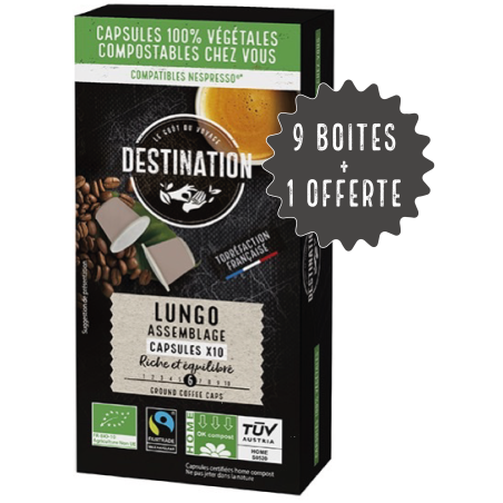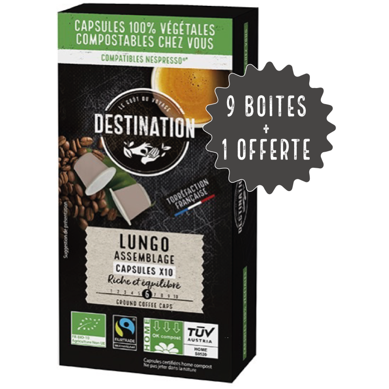 Capsules Homecompost Lungo Arabica & Robusta Bio Equitable 9 boîtes + 1 offerte